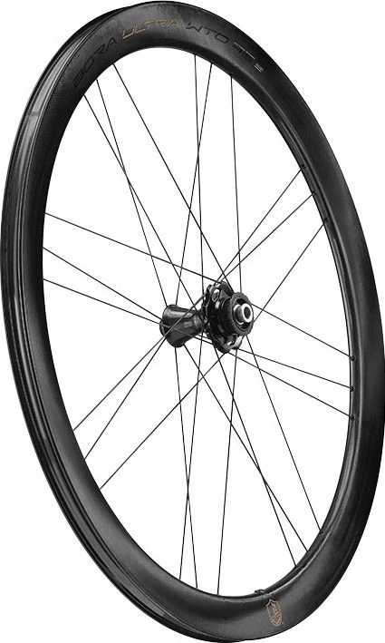 Now even lighter, thanks in part to its Hand Made Ultra-Light Carbon (HULC) construction, the Bora Ultra WTO 45 features thinner Aero elliptical spokes and hidden nipples to help split the air. The carbon hub body with an exclusive Campagnolo design is firmly attached to an aluminum flange and the integrated spoke seats ensure perfect alignment. A superb C-LUX finish and subtle new Bora Ultra graphics make the wheels elegant and stylish.