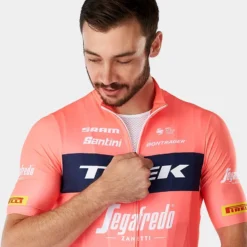 Santini X Trek Segafredo Replica Short Sleeve Jersey Coral / Pink