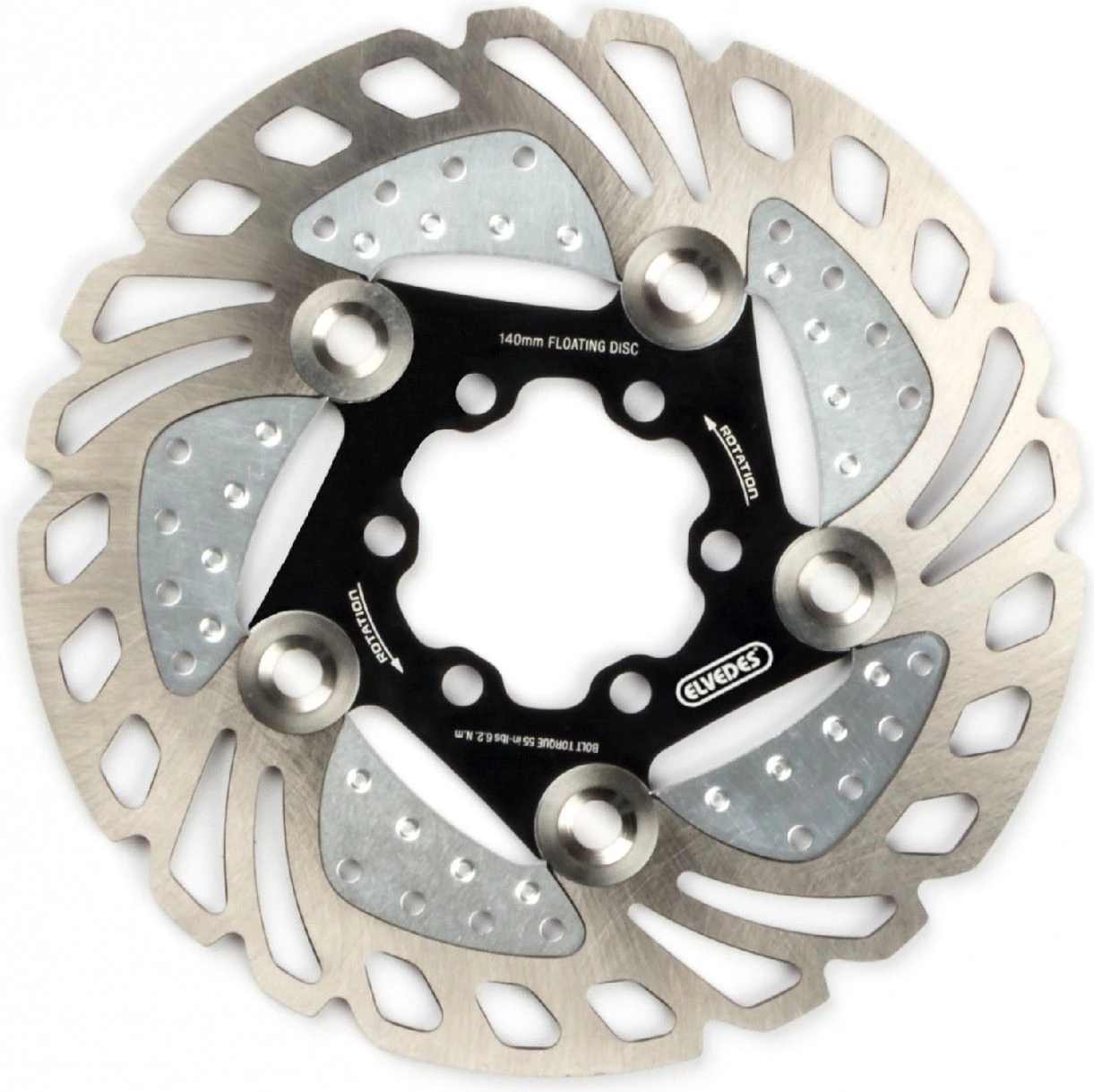The semi-floating Elvedes brake discs are designed to have a very low temperature rise thanks to the cooling system, for more constant and frank braking.
