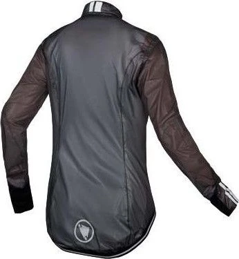 Ultra light-weight and translucent waterproof shell jacket with mechanical stretch.