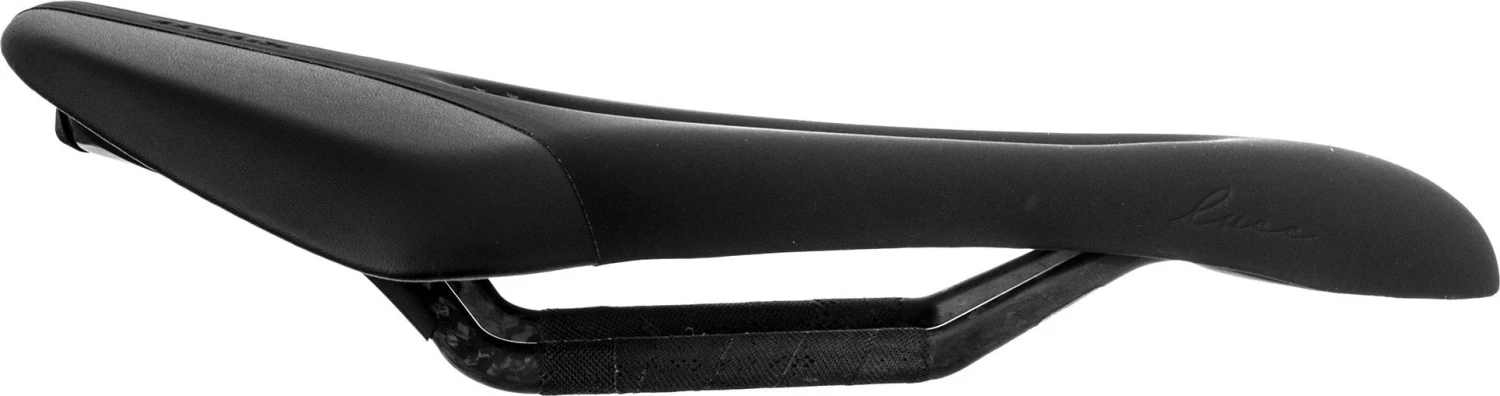 provides comfort and performance, thanks to its wider seat and its better weight distribution. The assembly is composed of a central part in Nylon for rigidity, and the side parts in thermoplastic elastomer for more flexibility. Its oval carbon rails have excellent rigidity and high resistance to pressure. The Fizik Luce has a saddle channel to limit the pressure on the central part of the saddle. The Luce saddle will be perfect for female profiles during training and road races.