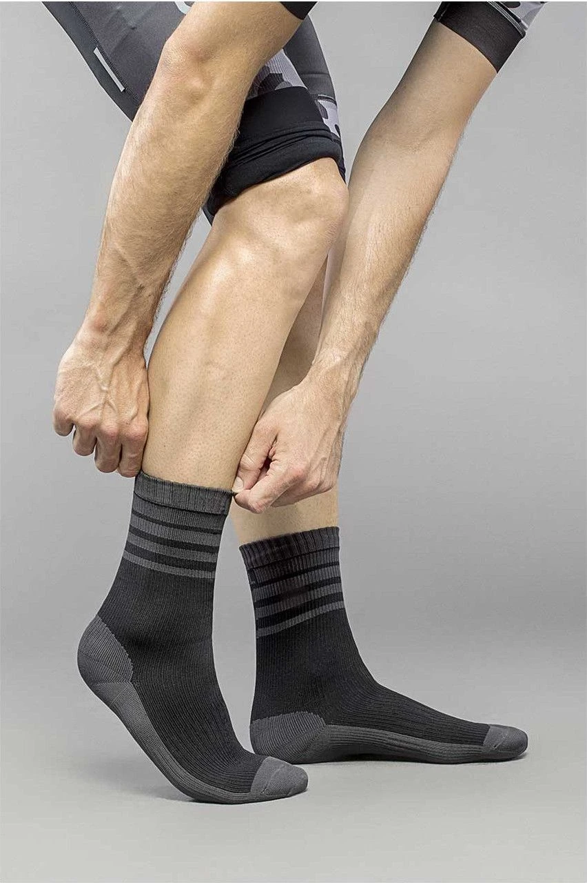 The GripGrab Waterproof Merino Thermal Sock is a fully waterproof, insulating and comfortable sock designed for the cold and very wet days. Merino wool offers comfort, high breathability as well as excellent insulating properties, making these socks ideal in the wettest of conditions. Both heel and toe are Nylon-reinforced for added durability.