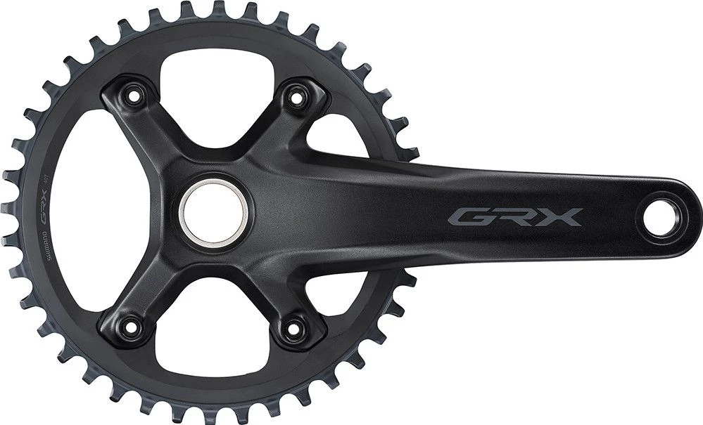 The GRX FC-RX600-1 is designed to tackle different types of terrain and respond to different driving styles. They offer a better chain line and more clearance for the rear tire (+ 2.5mm). The mono version offers a simplified transmission (RX800 / 600> cassette up to 40 teeth, RX800> cassette up to 42 teeth) and has teeth with an improved profile (Dynamic Chain Engagement) for a better grip of the chain on the accident lands.