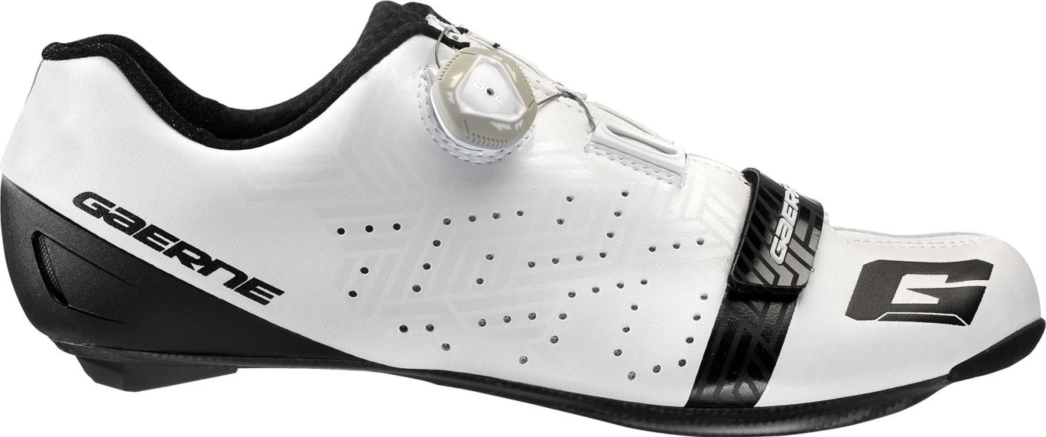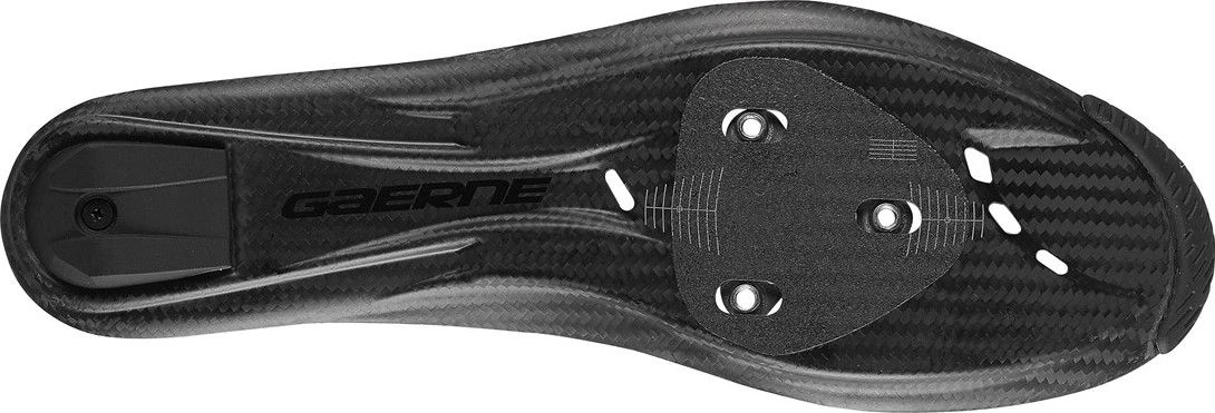 GAERNE EPS CARBON SOLE LG RE REEL LG RE 12.0 Ultra light and ultra slim, the carbon fiber weave guarantees the transfer of each watt of power to the blades. The stability of the foot is increased by the shape of the sole in the area of the plantar arch. Four ventilation openings guarantee ventilation inside the shoe. The sole has an anti-slip insert in the tip and an interchangeable cushion on the back. The positioning options of the cleats have been increased by 9 mm compared to the previous sole. An alignment scale printed on the soleplate allows you to memorize the position of the cleat. Exceptional stiffness index of 12.