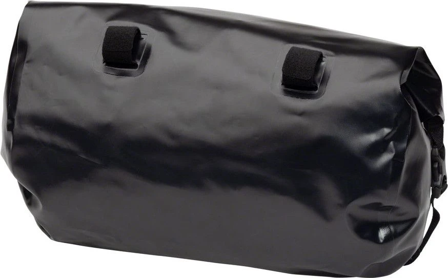 - Roll-top bag opens at top and is fixed-width for easy loading when mounted on the bike