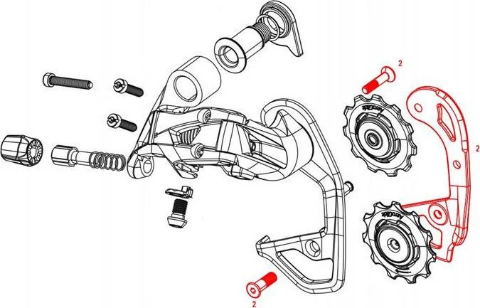 SRAM RED and RED 22 Short Internal Clevis, delivered with screws.