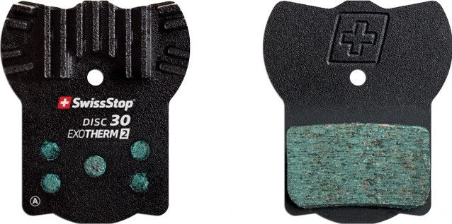 Maximum pad life, minimum brake fade. SwissStop Disc 30 EXOTherm2 combines an extremely durable, smooth modulating pad compound with a cooling fin equipped back plate which provides consistent, powerful braking in all conditions.