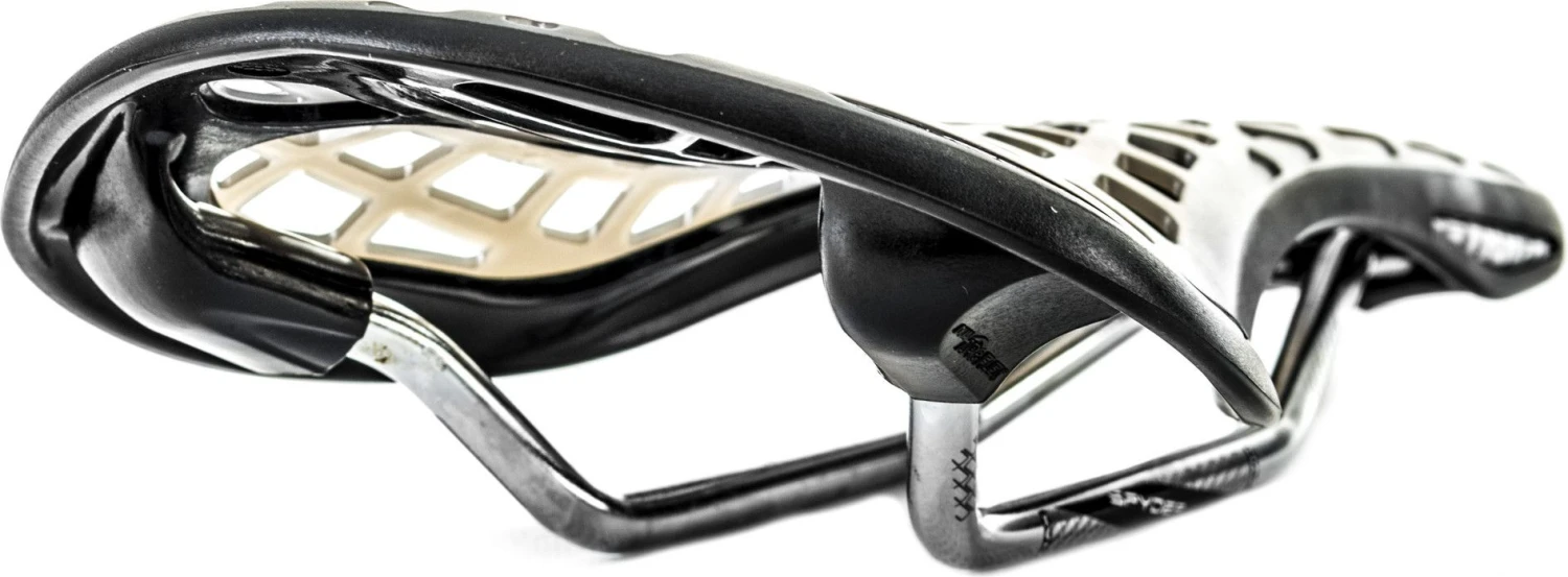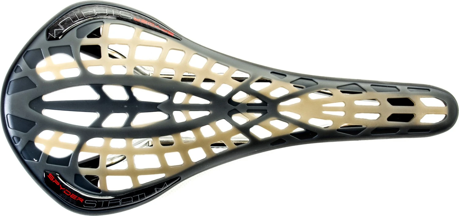 Flexile web cover conforms to you when seated, flexes when soaking up energy from bumps, and remains pliable to continually absorb shock. Underside support structures embedded within an impact resistant frame manages compression, balancing flex with seated support in ways not possible with conventional saddle design. The incomparable Spyder Stratum is soft and stiff at all the right places.