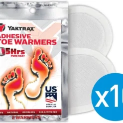 Yaktrax® Adhesive Toe Warmers are a safe, easy, and all-natural solution to painfully cold toes. Once opened and exposed to oxygen in the air, these disposable but environmentally-friendly warmers begin working in just minutes. Apply them directly to the top of your socks to form a radiant barrier of warmth inside your shoes that lasts up to 5 hours. Yaktrax Warmers are the ideal choice for outdoorsman, winter athletes, spectators, and anyone who works or plays outdoors.